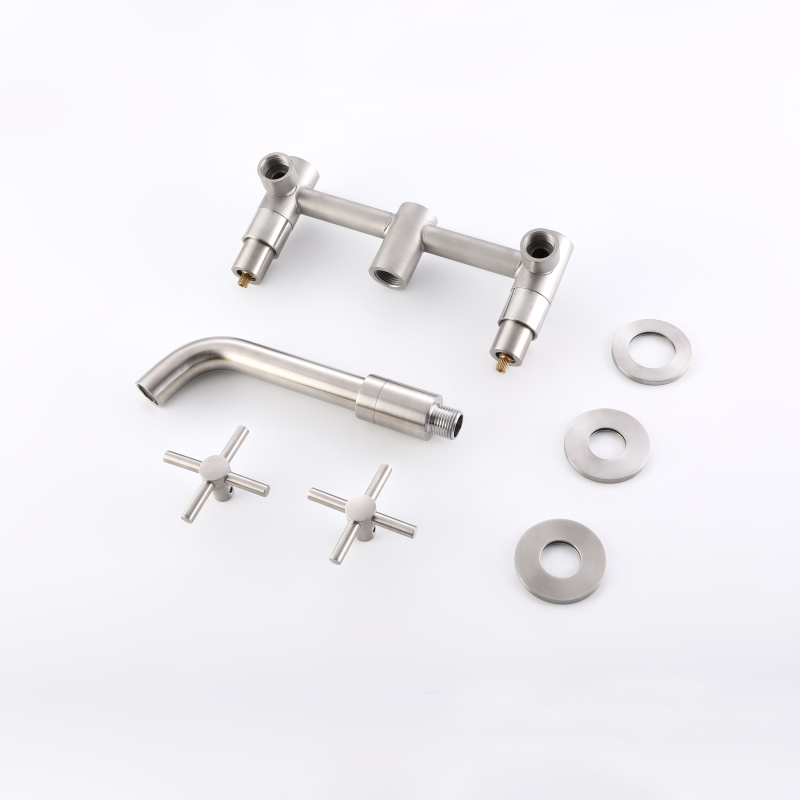 Los grifos brindan un efecto de flujo de agua suave con una manija doble que controla el flujo y la temperatura del agua.