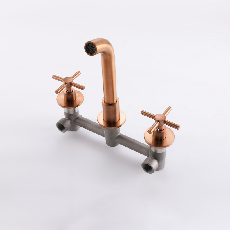 Los grifos brindan un efecto de flujo de agua suave con una manija doble que controla el flujo y la temperatura del agua.