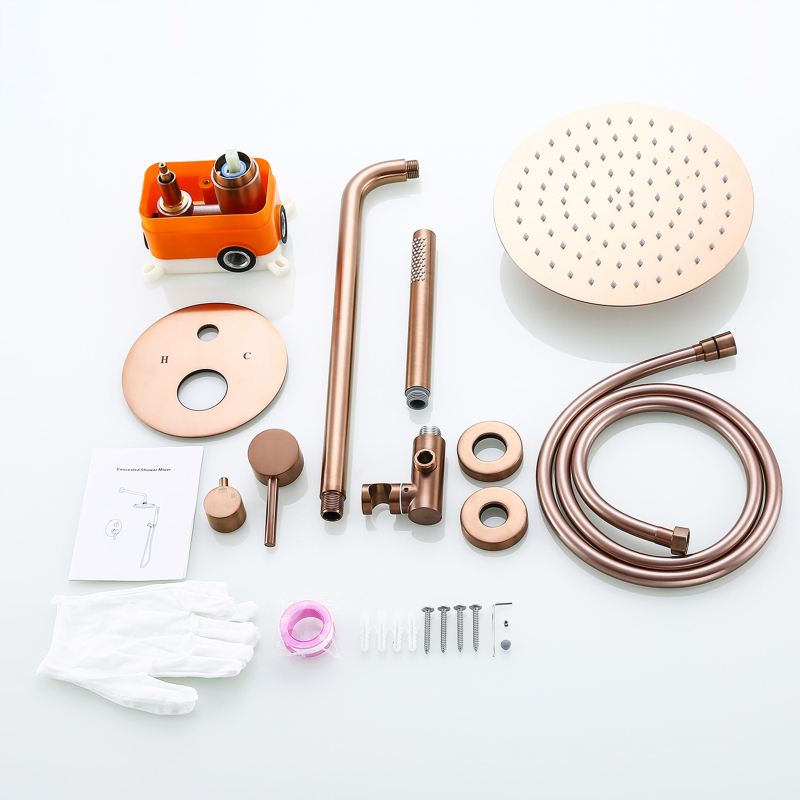 El juego de ducha empotrado proporciona un efecto de ducha cómodo con dos funciones, rociador superior controlable y cabezal de ducha de mano, manija única y control opcional del flujo y la temperatura del agua.