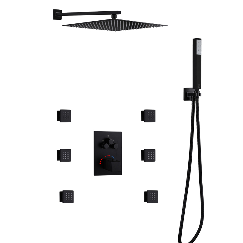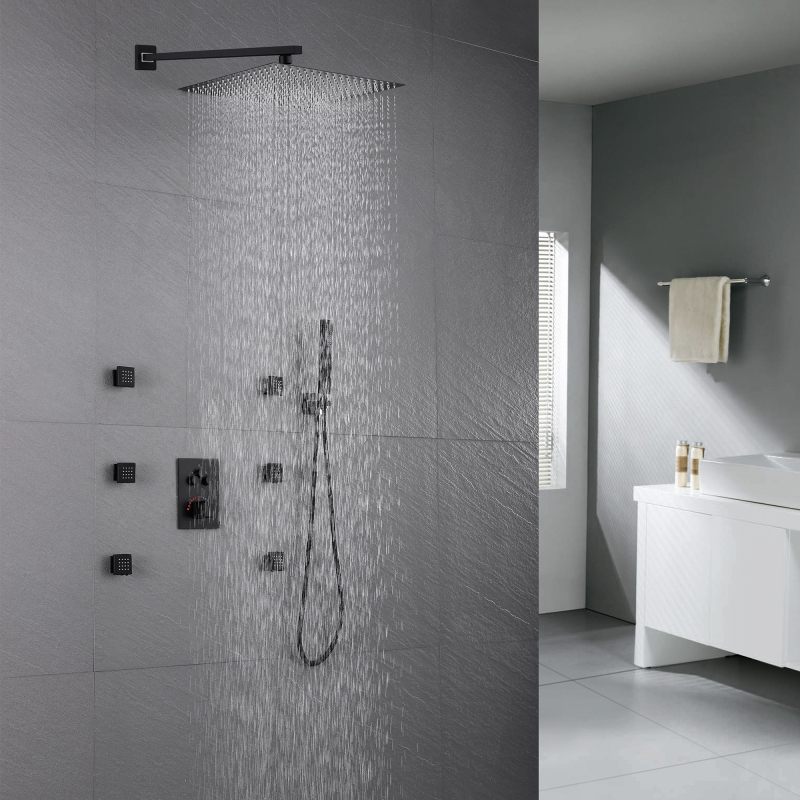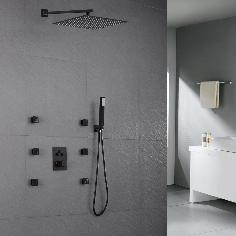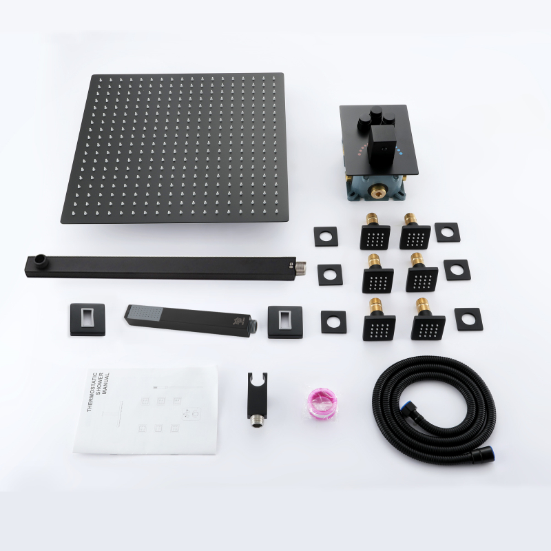 Mezclador de ducha termostático oculto de 3 funciones : el juego de ducha de acero inoxidable 304 brinda una sensación de baño cómoda a su baño, un estilo de diseño de apariencia simple y moderno, agrega estilo a su baño. Está fabricado íntegramente en acero inoxidable 304 para una máxima durabilidad. Y ofrece una variedad de tratamientos de color para su elección, como cromo, negro mate, trefilado de acero inoxidable, gris pistola, oro trefilado, oro rosa de cobre ácido, oro rosa, etc., puede elegir su color favorito para combinar con su estilo de decoración de baño favorito.