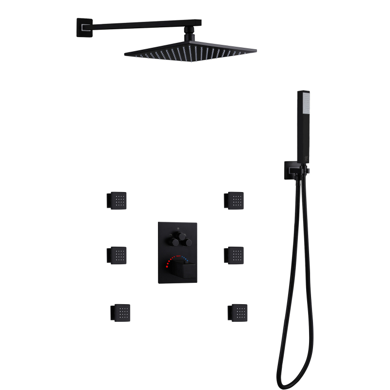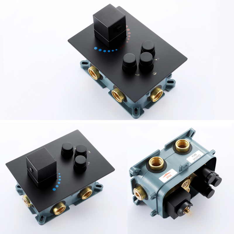 Mezclador de ducha termostático oculto de 3 funciones : el juego de ducha de acero inoxidable 304 brinda una sensación de baño cómoda a su baño, un estilo de diseño de apariencia simple y moderno, agrega estilo a su baño. Está fabricado íntegramente en acero inoxidable 304 para una máxima durabilidad. Y ofrece una variedad de tratamientos de color para su elección, como cromo, negro mate, trefilado de acero inoxidable, gris pistola, oro trefilado, oro rosa de cobre ácido, oro rosa, etc., puede elegir su color favorito para combinar con su estilo de decoración de baño favorito.