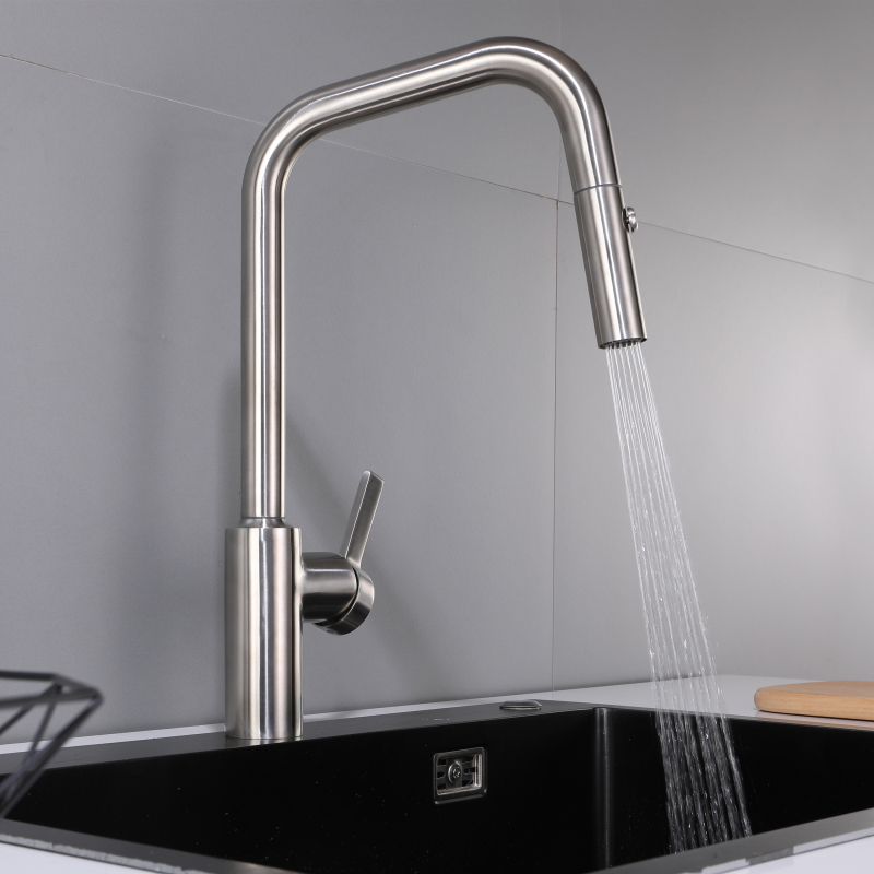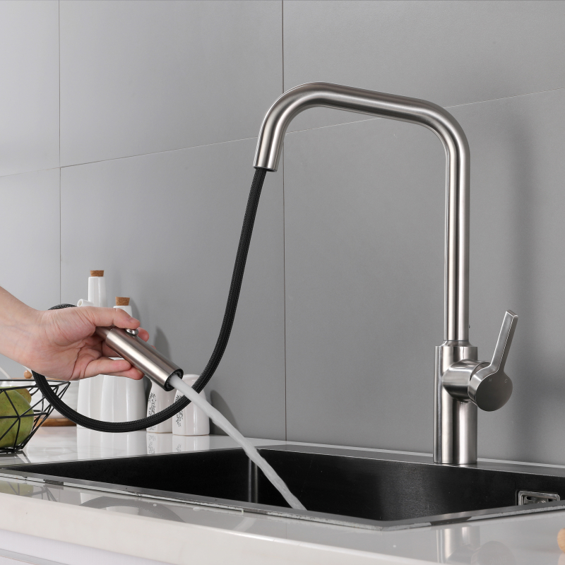Grifo mezclador extraíble para cocina : el grifo para fregadero de acero inoxidable 304 brinda una sensación simple y limpia a su cocina, especialmente diseñado para lavabos tipo recipiente, con una altura adecuada que lo hace cómodo al usarlo. Está fabricado íntegramente en acero inoxidable 304 para una máxima durabilidad. Y ofrece una variedad de tratamientos de color para su elección, como cromo, negro mate, acero inoxidable cepillado, gris pistola, oro cepillado, oro rosa de cobre agrio, oro rosa, etc. Puede elegir su color favorito para combinar con su estilo de decoración de cocina favorito .