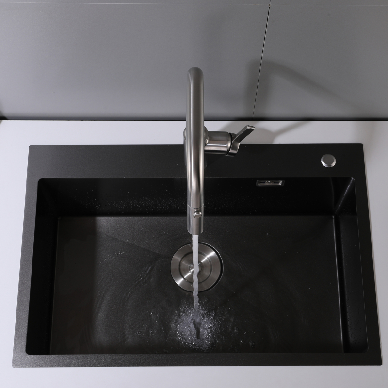 Los grifos brindan un efecto de flujo de agua suave con una sola manija que controla el flujo y la temperatura del agua.