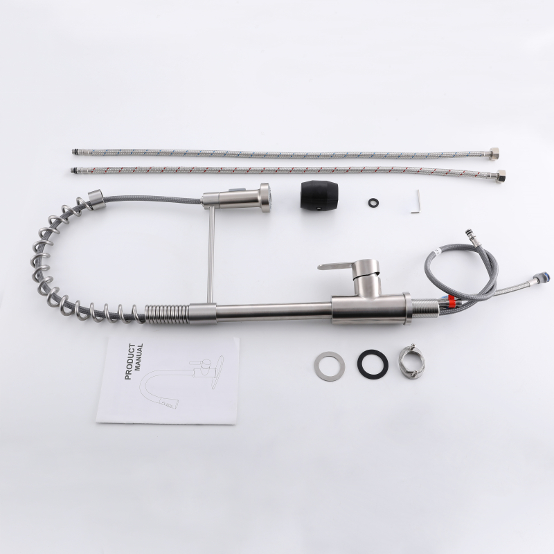 Grifo mezclador de cocina con resorte extraíble : el grifo para fregadero de acero inoxidable 304 brinda una sensación simple y limpia a su cocina, especialmente diseñado para lavabos tipo recipiente, con una altura adecuada que lo hace cómodo al usarlo. Está fabricado íntegramente en acero inoxidable 304 para una máxima durabilidad. Y ofrece una variedad de tratamientos de color para su elección, como cromo, negro mate, acero inoxidable cepillado, gris pistola, oro cepillado, oro rosa de cobre agrio, oro rosa, etc. Puede elegir su color favorito para combinar con su estilo de decoración de cocina favorito .
