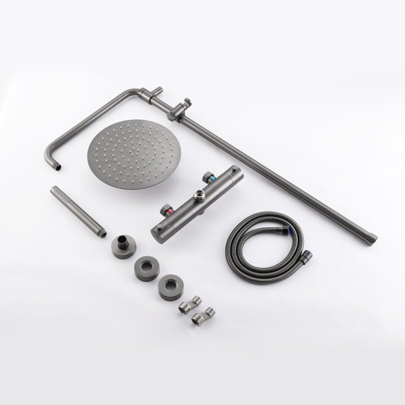 Mezclador termostático de ducha : el juego de ducha de acero inoxidable 304 brinda una sensación de baño cómoda a su baño, un estilo de diseño de apariencia simple y moderno, agrega estilo a su baño. Está fabricado íntegramente en acero inoxidable 304 para una máxima durabilidad. Y ofrece una variedad de tratamientos de color para su elección, como cromo, negro mate, trefilado de acero inoxidable, gris pistola, oro trefilado, oro rosa de cobre ácido, oro rosa, etc., puede elegir su color favorito para combinar con su estilo de decoración de baño favorito.