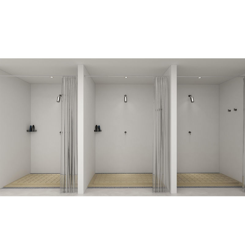 Las duchas empotradas brindan un efecto de ducha confortable con la opción de controlar el flujo y la temperatura del agua.