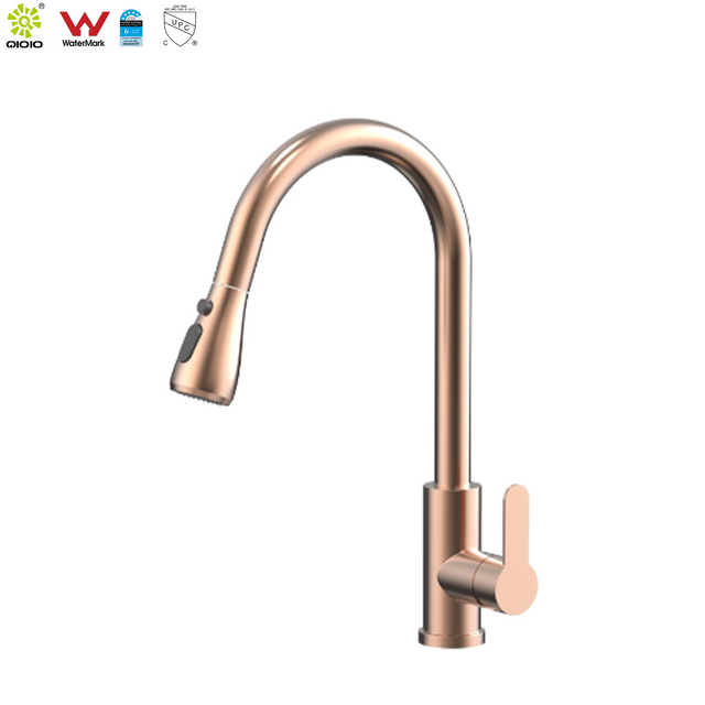 CUPC-grifo mezclador de cocina extraíble de un solo orificio, de acero inoxidable 304, cobre, oro rosa, alta calidad